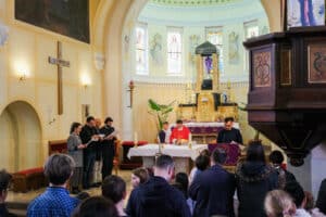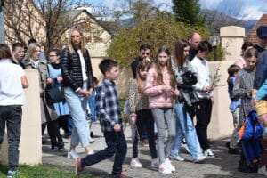 Želeći obilježiti ovu prvu dvoznamenkastu obljetnicu hodočastili smo u Krašić blaženom kardinalu Stepincu. Na svetoj misi koja je započela blagoslovom maslinovih grančica i procesijom okupio se veliki broj obitelji i djelatnika škola. Predvodio ju je naš duhovnik, vlč. Josep Peguera Poch a sviranjem je uveličala gđa. Eva Kirchmayer Bilić. U sklopu hodočašća imali smo priliku obići rodnu kuću te spomen-dom Kardinala Stepinca gdje je blaženik živio i preminuo, molili smo pobožnost križnog puta i još imali dosta vremena družiti se i uživati na proljetnom suncu.