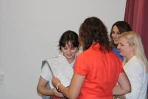 Naših dragih 19 ružica, 21.6. završilo je svoje osnovnoškolsko obrazovanje u Ružičnjaku. Zadnjeg dana, koji je protekao u miru i radosti, oprostile su se uz suze, smijeh i zagrljaje jedna od druge te od profesora. Kruna njihovog završetka bila je svečana podjela svjedodžbi. Naše osmašice su obogatile vrt Ružičnjaka bivajući ružama koja svaka raste i sazrijeva na svoj poseban način. Iako su naše ružice završile put osnovnog školstva u Ružičnjaku, uvijek ćemo ih pratit u molitvi