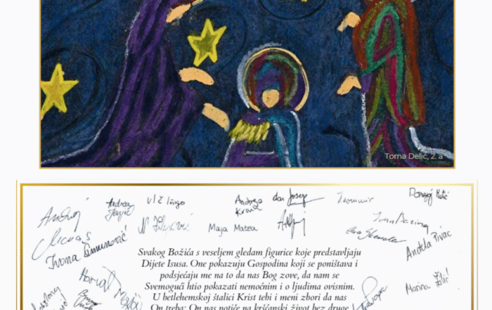 Poštovani prijatelji OŠ Lotrščak! Želimo vam sretan Božić i blagoslovljenu novu 2026. godinu! U čestitci je crtež našeg učenika Tome Delića. Vaš Lotrščak
