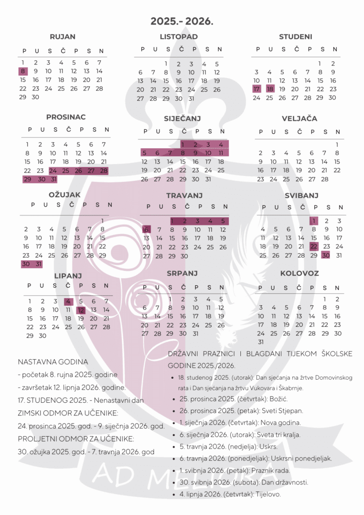 Mi smo škola koja pripada mreži škola pod nazivom Parentes (Red Educativa Parentes). Tražimo akademsku, ali i ljudsku izvrsnost, jer dobar čovjek je obično i dobar profesionalac. Zato su poštovanje prema drugima, prema samome sebi i prema dobro obavljenom poslu osnovne ljudske i kršćanske vrijednosti koje želimo usaditi našim učenicima, kroz blisku suradnju s njihovim roditeljima. Naši ciljevi su ambiciozne naravi: služiti društvu, obiteljima i učenicima.