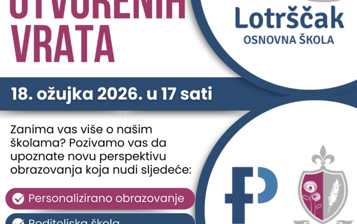 Dragi roditelji, U srijedu 12.11.2025. u 17 sati, u našim školama, OŠ Ružičnjak i OŠ Lotrščak, održat će se Dan otvorenih vrata. Na Danu otvorenih vrata imat ćete priliku čuti kratku prezentaciju o školama, prošetati po školi i razgovarati s učiteljima, učenicima i roditeljima naših učenika. Bilo bi dobro da [...]